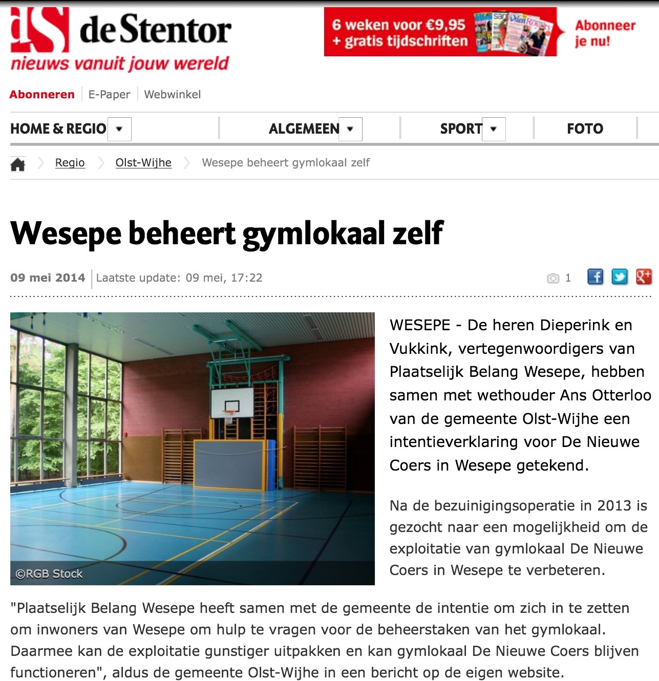 Plaatselijk Belang Wesepe heeft samen met de gemeente de intentie om zich in te zetten om inwoners van Wesepe om hulp te vragen voor de beheerstaken van het gymlokaal. Daarmee kan de exploitatie gunstiger uitpakken en kan gymlokaal De Nieuwe Coers blijven functioneren. (Bron website gemeente Olst-Wijhe)